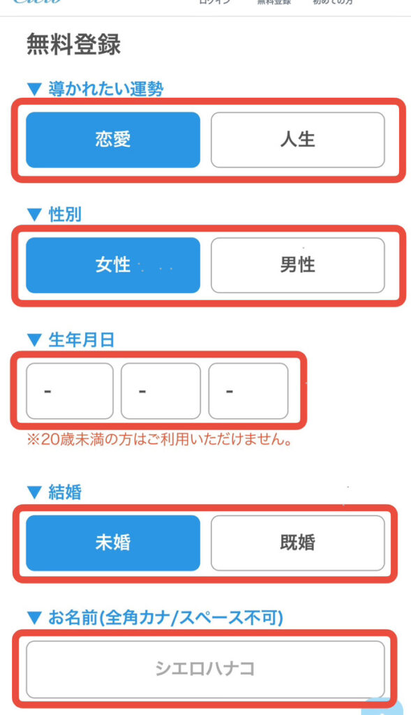 電話占いシエロの登録の方法