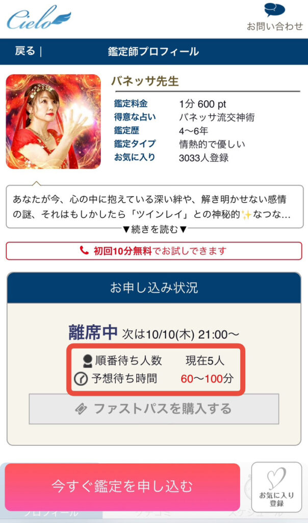 電話占いシエロでは「順番待ち」というシステムがあります。